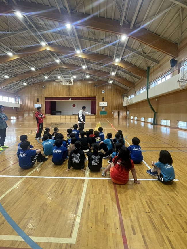 グランドに比べると、練習できる範囲に限りがありますが、いつもと違う練習会場は、小学生のテンションも上がりますね(笑)